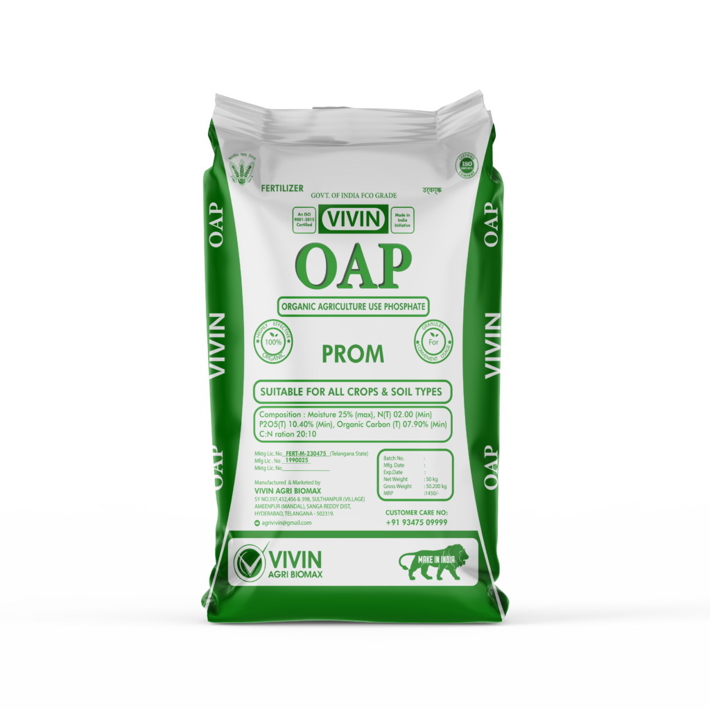 – Apart from Phosphorus OAP is a rich source of organic carbon, nitrogen, potash and other vital plant nutrients